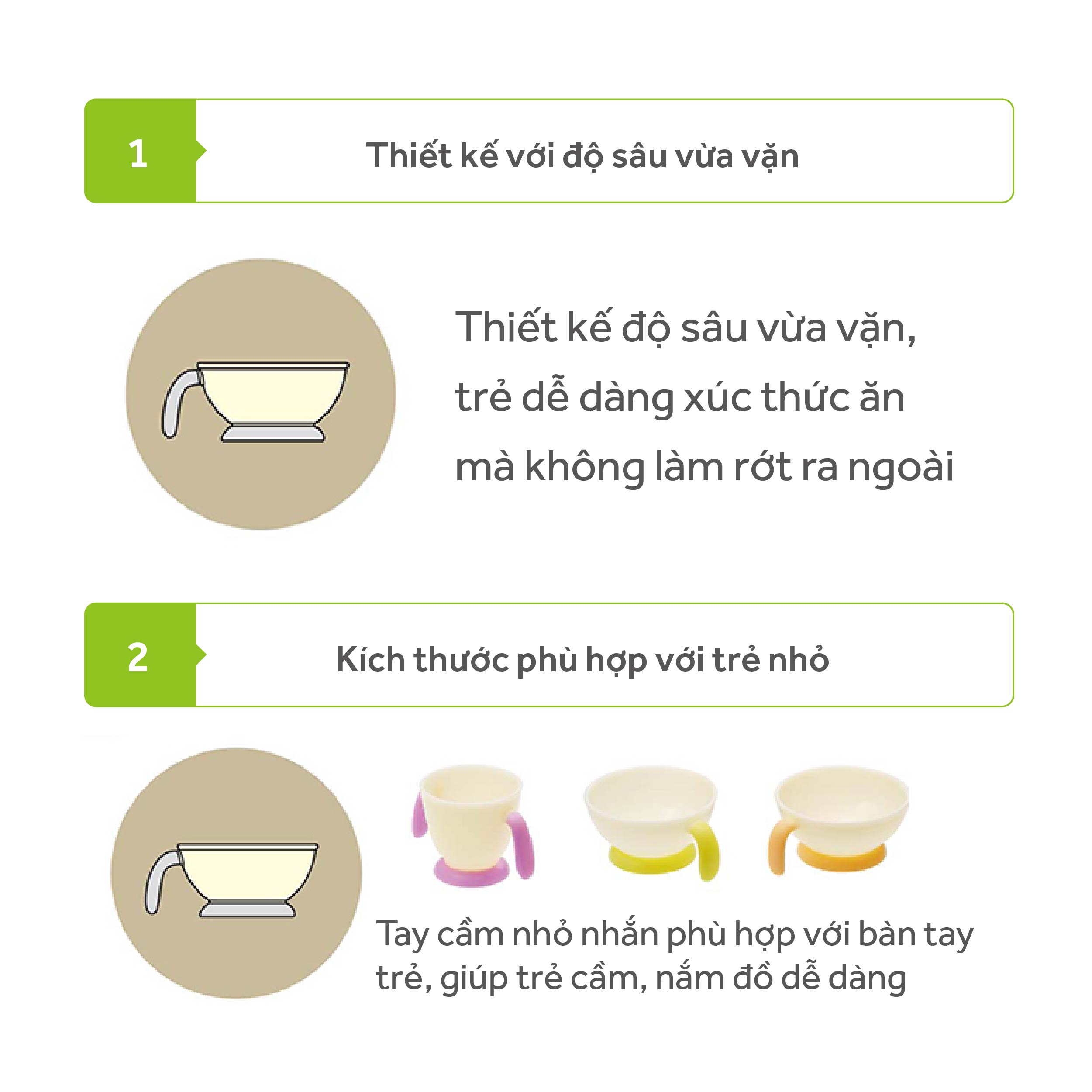 Với Bát em bé Combi, mẹ dễ dàng chuẩn bị khẩu phần ăn phù hợp cho bé. Với thiết kế kiểu dáng đáng yêu với màu sắc nổi bật, bé hứng thú và tập trung hơn trong mỗi bữa ăn.