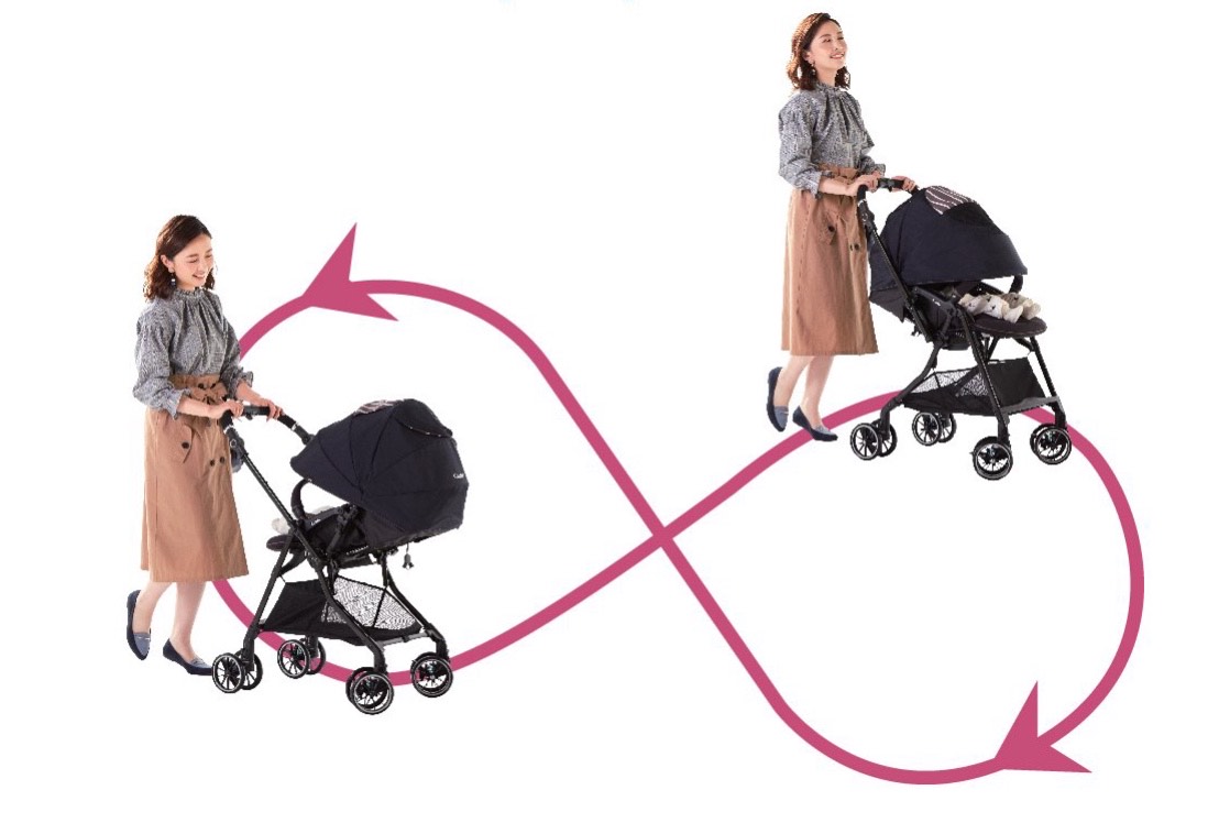 Chức năng độc đáo này giúp việc đẩy xe thật trơn tru, Mẹ dễ dàng điều chỉnh góc quay của xe với cả hai chiều tay đẩy để di chuyển ngay cả ở những khúc ngoặt với góc hẹp.