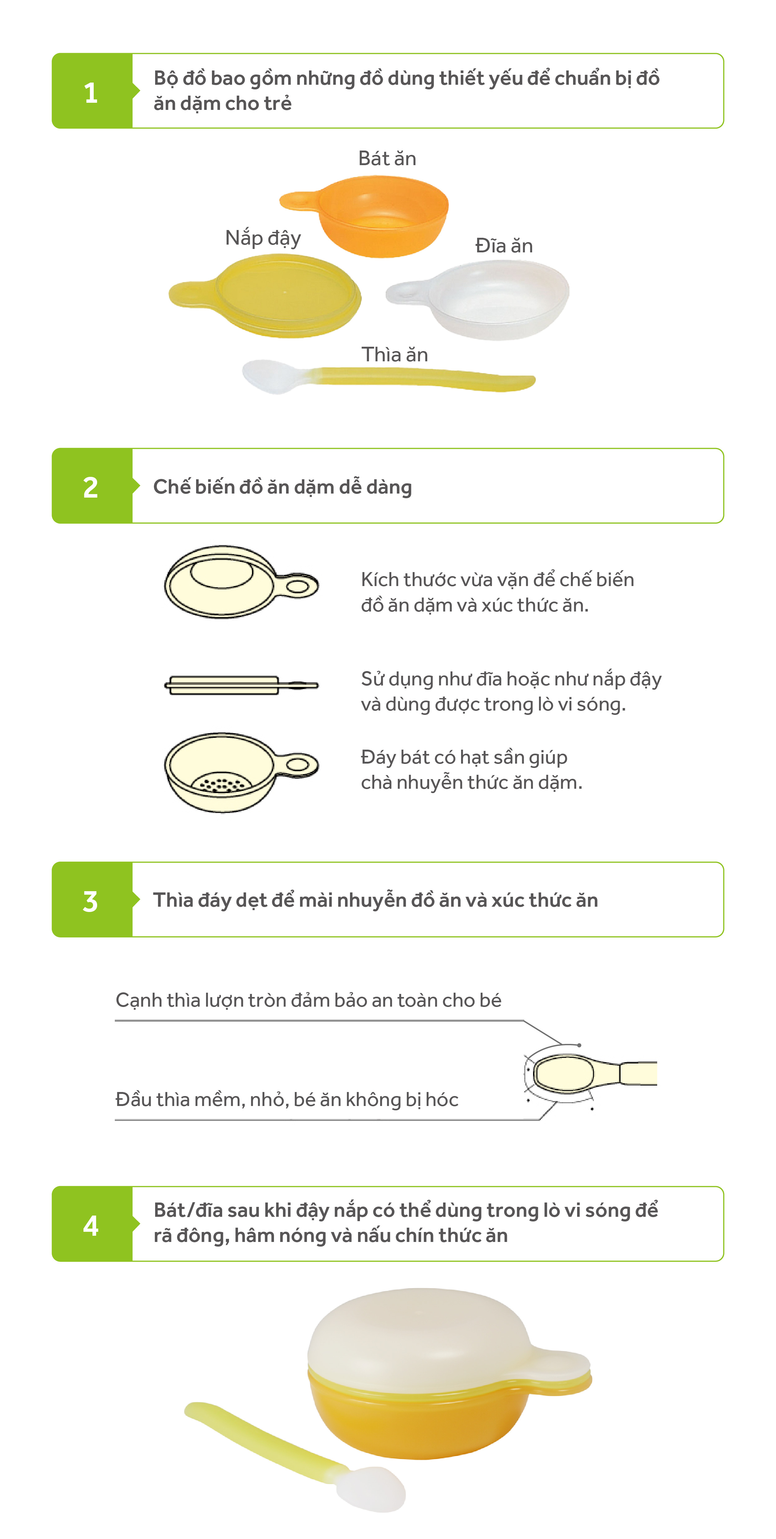 - Có thể tiệt trùng bằng lò vi sóng hoặc nước sôi