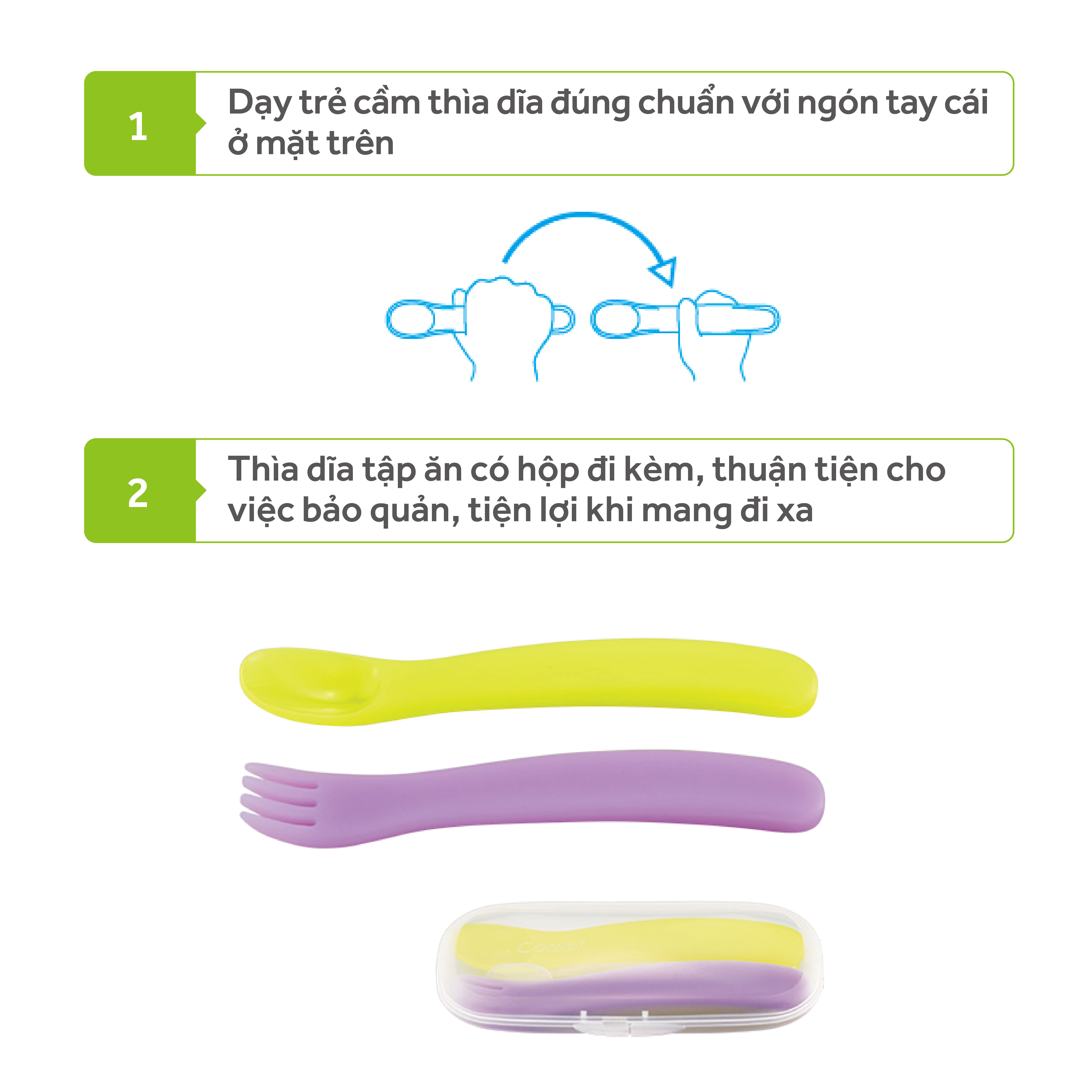 Bộ thìa dĩa tím Combi kèm hộp