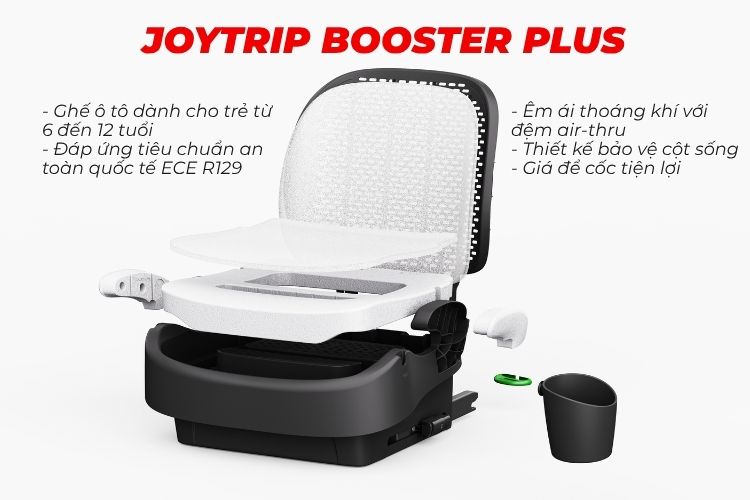 Joytrip Booster Plus: Ghế ngồi cho trẻ từ 6–12 tuổi, thiết kế bảo vệ cột sống, đệm êm ái, phù hợp cho bé lớn.