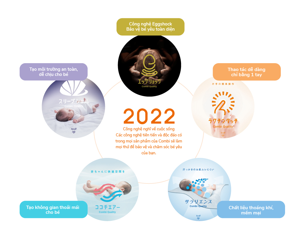 Những công nghệ ưu việt hướng về cuộc sống, hướng về sự bao bọc, che chở và nâng niu trẻ nhỏ vẫn đang được hàng triệu khách hàng trên thế giới tin tưởng sử dụng. Các tinh hoa công nghệ của Combi phải kể đến: