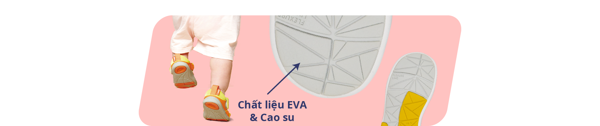 7. Đế giầy được làm từ chất liệu EVA và cao su siêu nhẹ giúp bước chân của bé thật thảnh thơi, nhẹ nhàng.