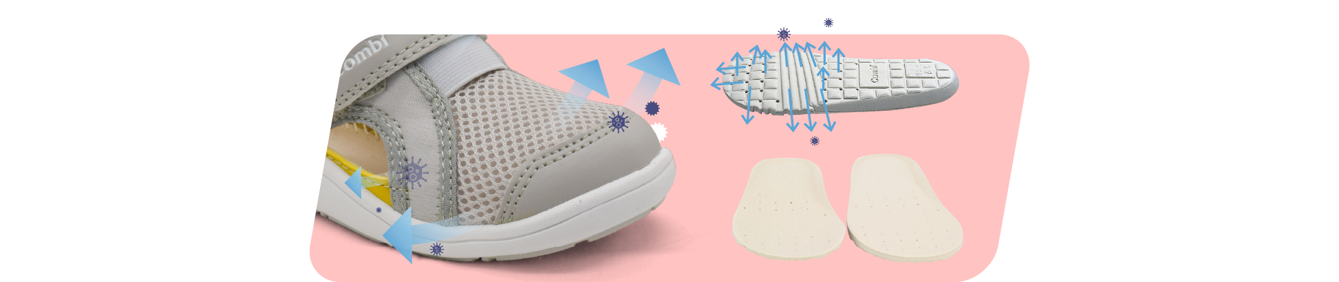 Dựa trên nghiên cứu khoa học về cấu tạo xương bàn chân của trẻ em châu Á, sự thay đổi trong dáng đi của trẻ theo độ tuổi, Combi mang tới GIẦY COMBI ĐẾ ĐỊNH HÌNH độc quyền sáng chế giúp bảo vệ và hỗ trợ sự phát triển xương bàn chân, cho bé những bước đi đầu đời thật khỏe mạnh, vững vàng.