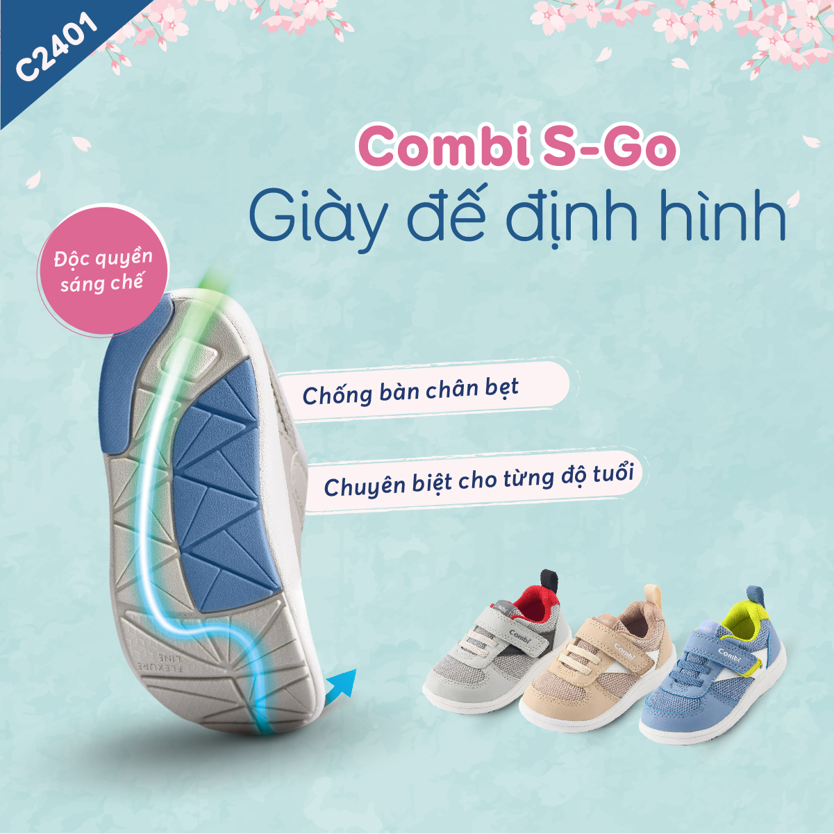 Giày Combi S-Go đế định hình chống bàn chân bẹt C2401 màu kaki