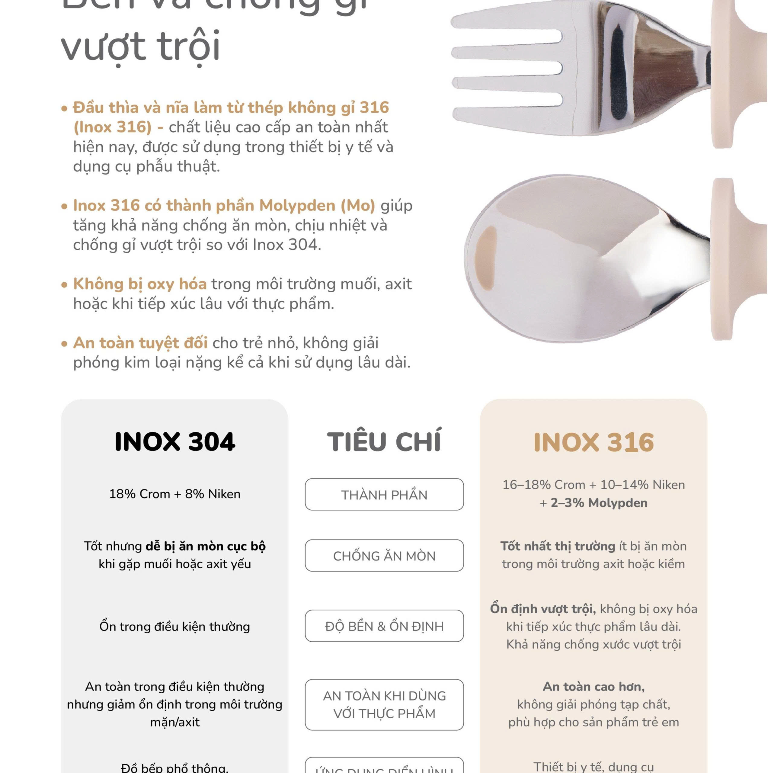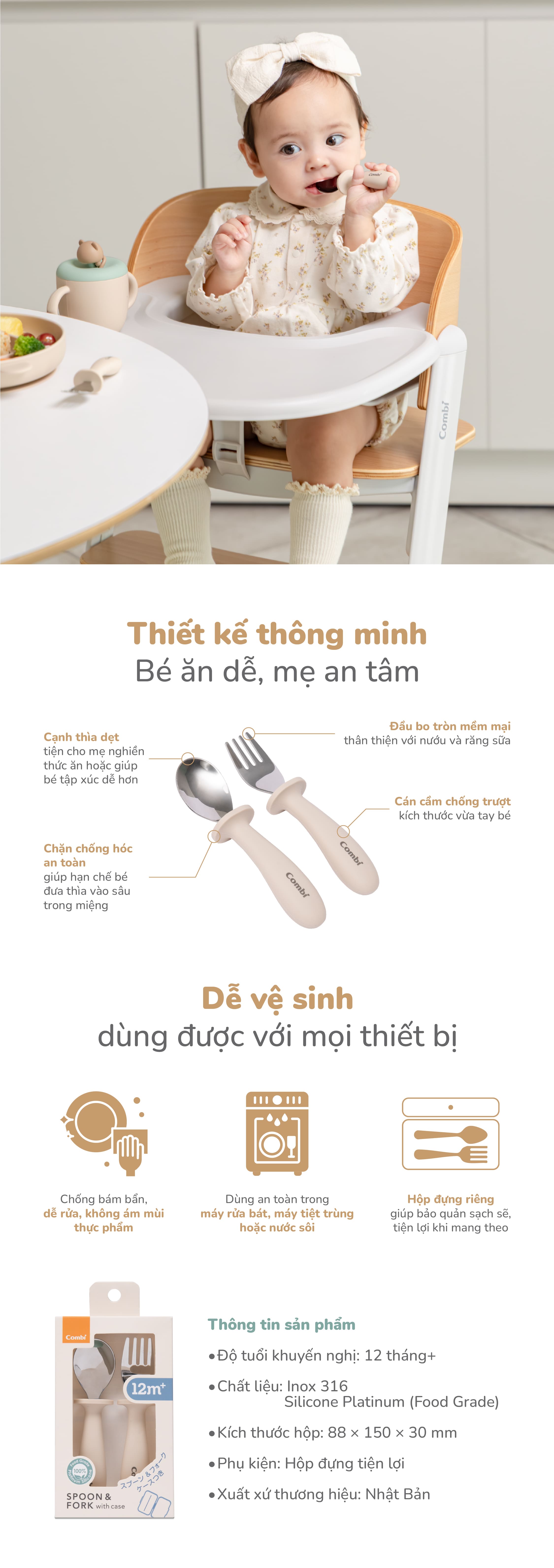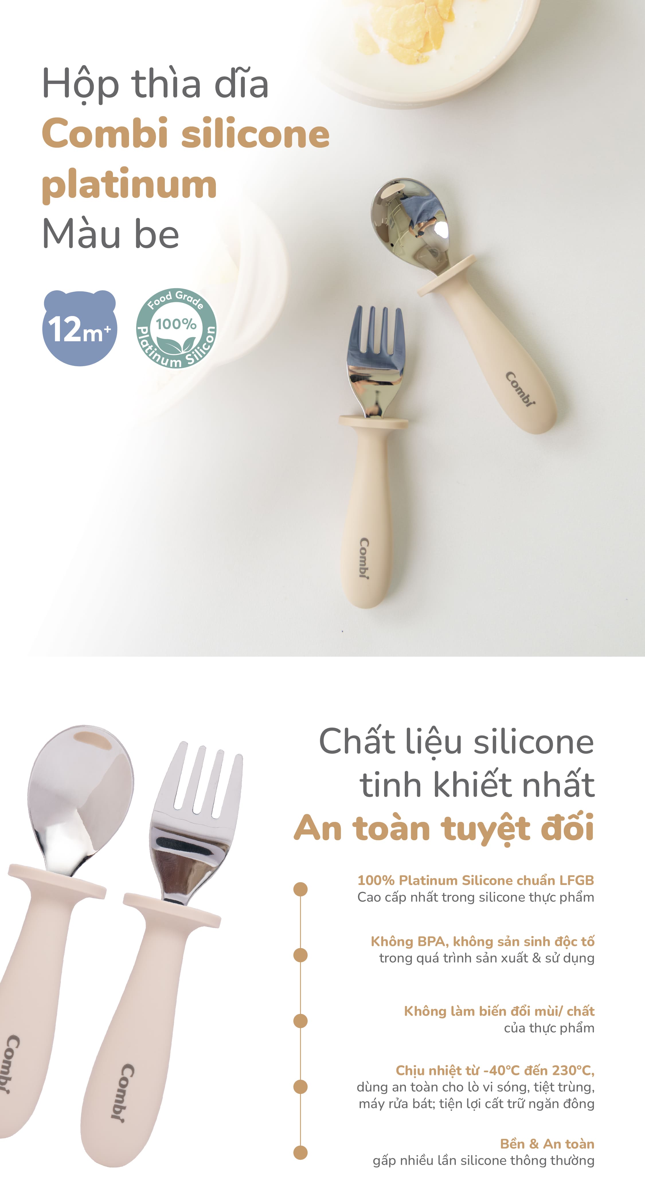 Hộp thìa dĩa Combi silicone platinum màu be