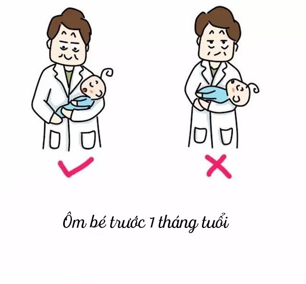 Trong 3 tháng đầu đời, xương sống của bé khá mềm. Nếu bế bé nằm thẳng, song song với mặt đất sẽ khiến trọng lượng cơ thể dồn hết xuống phần xương cổ. Điều này có thể dẫn tới những tổn thương quanh phần cổ. Mặt khác, nếu thường xuyên bế bé kiểu này, xương sống của bé sẽ bị đè nén và phát triển dị dạng. Chính vì thế, tốt nhất, nên bế bé nằm hơi chếch người và dùng tay nâng sau gáy của bé trong tháng đầu tiên.