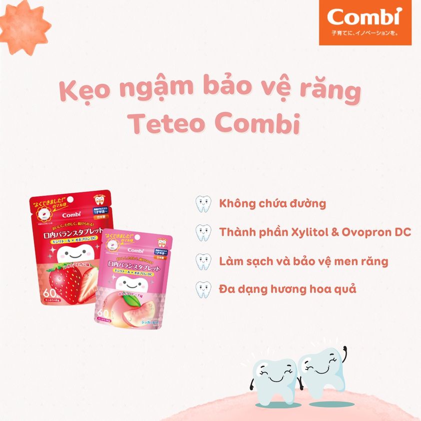 Các tip giúp ba mẹ chăm sóc răng xinh cho bé trong mùa lễ hội sẽ được Combi mách nhỏ tại đây ba mẹ nhé: