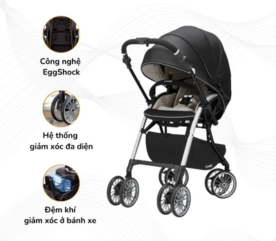 Xe đẩy Combi Umbretta là xe đẩy có độ an toàn cao nhất nhờ được trang bị 3 công nghệ giảm shock tốt nhất bao gồm: Công nghệ Eggshock độc quyền, Hệ thống giảm xóc đa diện ở khung - trục bánh xe, Đệm khí giảm xóc ở bánh xe.