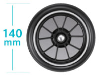 10. Bánh xe với kích thước lớn 140mm phù hợp với nhiều kiểu địa hình đường xá. Xe có thể đẩy êm và lướt nhẹ ngay cả trên những đoạn đường mấp mô