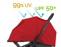 - Chỉ số chống nắng của vải (màn chụp) lên tới UPF 50+ giúp chống 99% tia UV, bảo vệ bé tốt hơn trước ánh nắng hè.