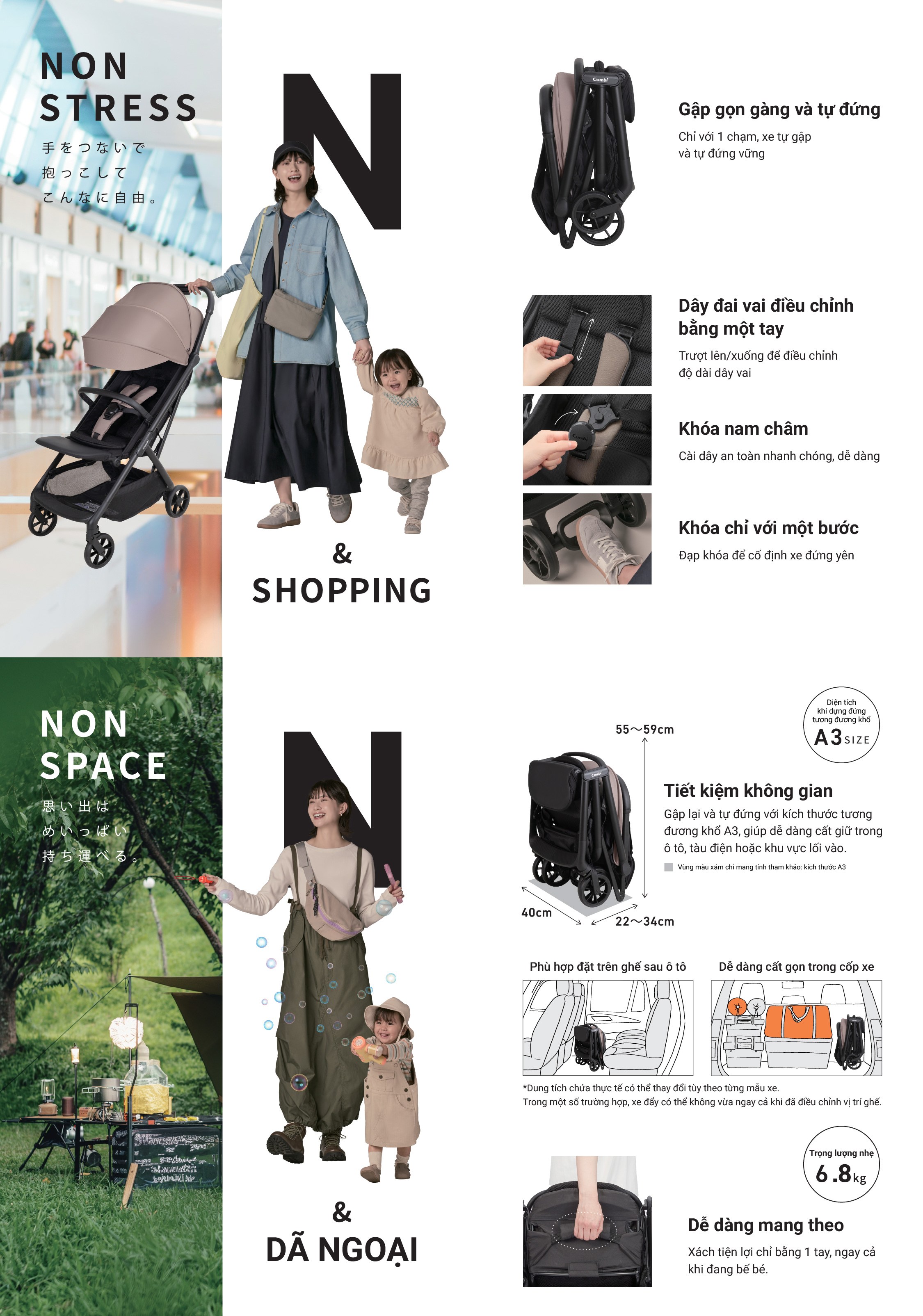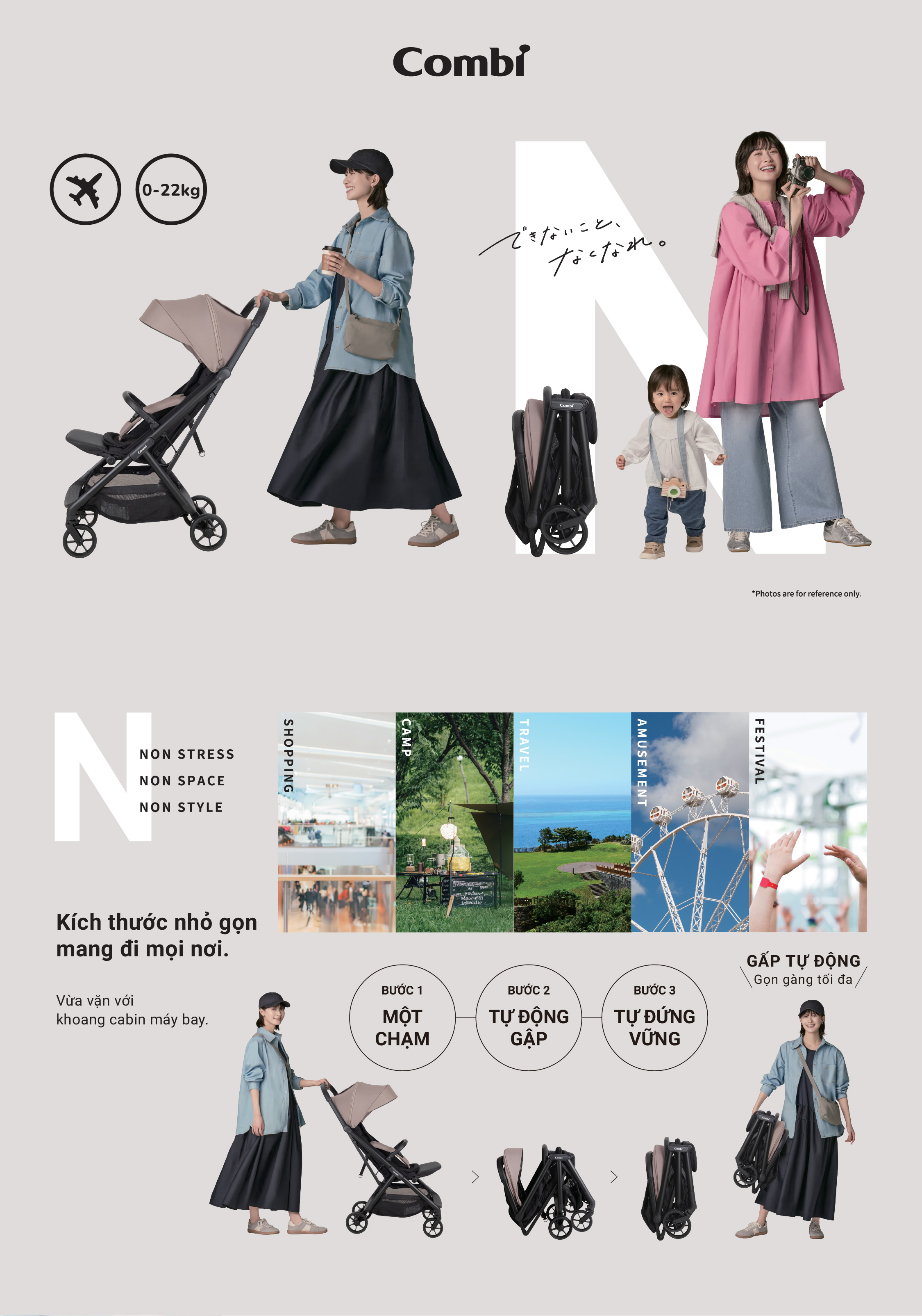 Xe đẩy du lịch gấp gọn Combi Auto N Neo - màu be