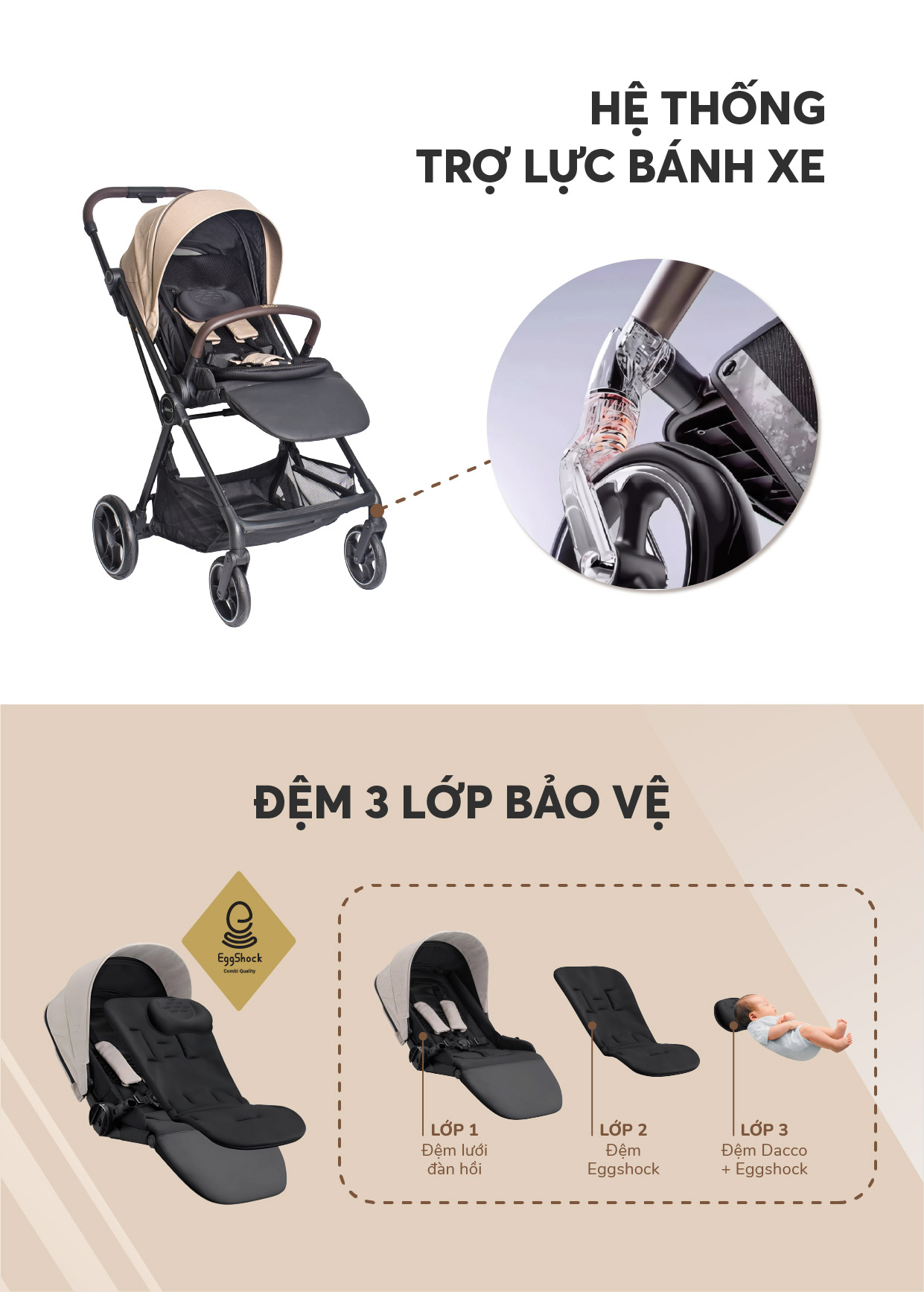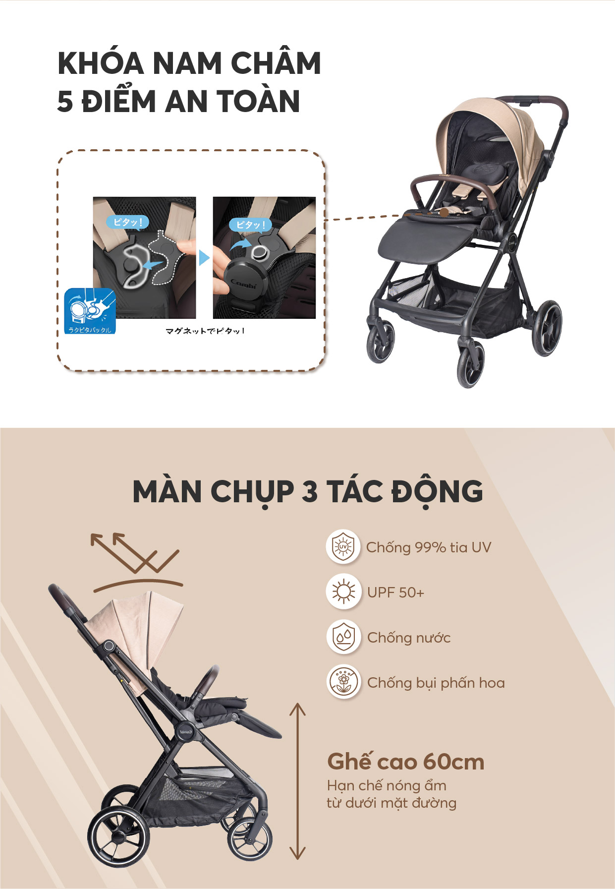Xe đẩy Combi Sugocal Light 4 bánh quay tự động ...