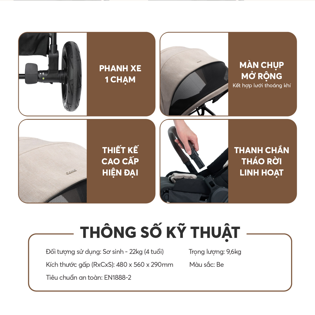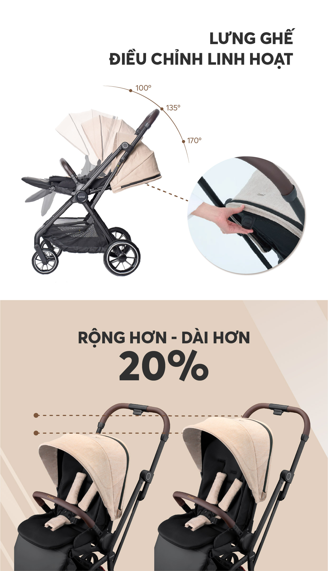 Xe đẩy gấp gọn 2 chiều Combi Citta Plus - Màu be